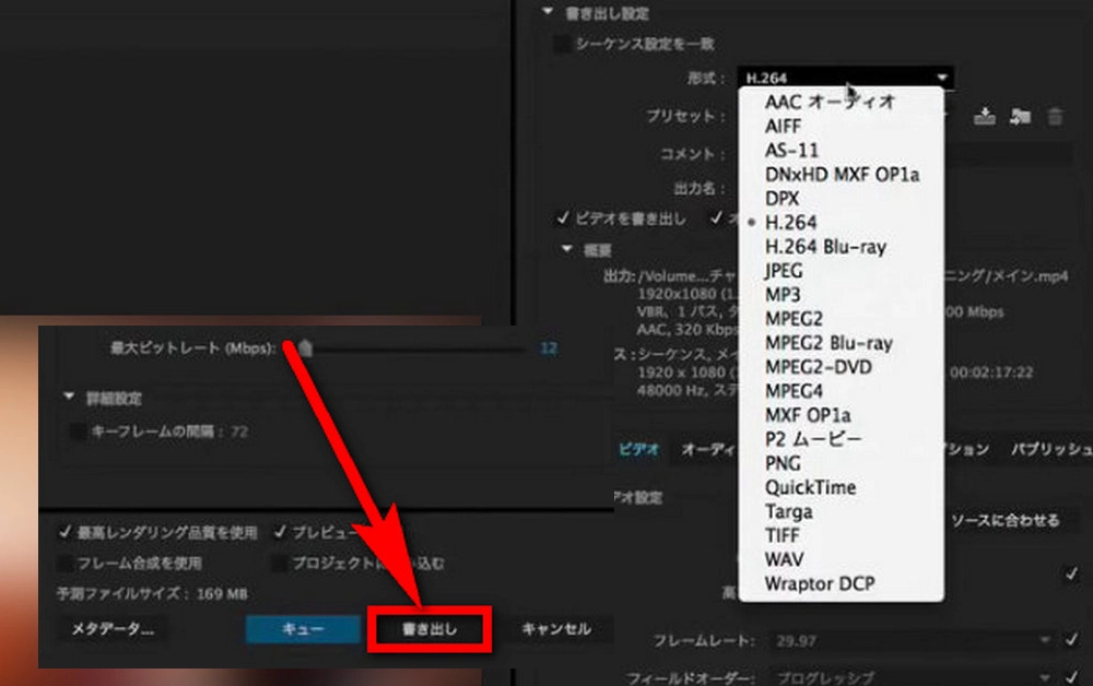 Premiere Proで編集したPRPROJファイルをMP4形式にエクスポートする際、コーデックビットレートの設定は非常に重要です。これらの設定は、エクスポートされた動画の画質とファイルサイズに大きな影響を与えます。H.264コーデックは、広くサポートされているため、多くの場合はこのコーデックを選択するのが良いでしょう。