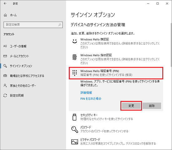 Windows 10のPINを変更する手順はどのようになっていますか?
