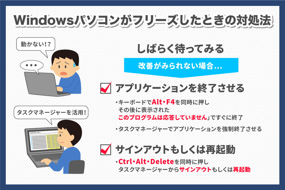 これらの対策を講じることで、PCフリーズの問題を解決できる可能性があります。問題の原因を特定し、適切な対処法を実施することで、快適なPC利用を取り戻すことができるでしょう。